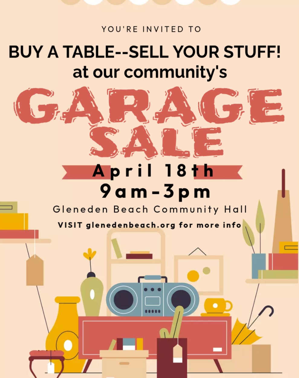 Stopping at one garage sale is always fun, but what if there were 20 different vendors in one stop–Whoo hoo! One-stop shopping from multiple community members and all in one place, indoors, and treats for sale too. It’s almost too much fun.